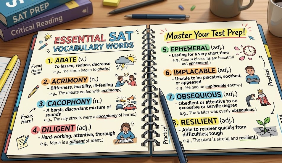 Mastering sat vocabulary words is an essential part of building strong reading comprehension skills for the SAT exam. Even though modern SAT questions focus more on context than direct memorization, vocabulary still plays a major role in helping students understand complex passages, identify tone, and interpret meaning accurately. A strong vocabulary foundation directly improves both speed and confidence during the test.
